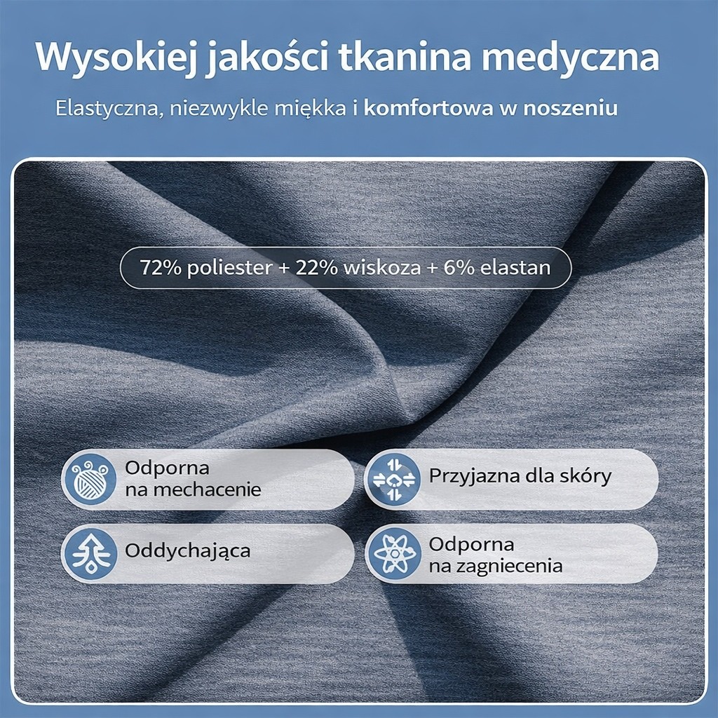 - Elastyczna tkanina zapewniająca swobodę ruchów
