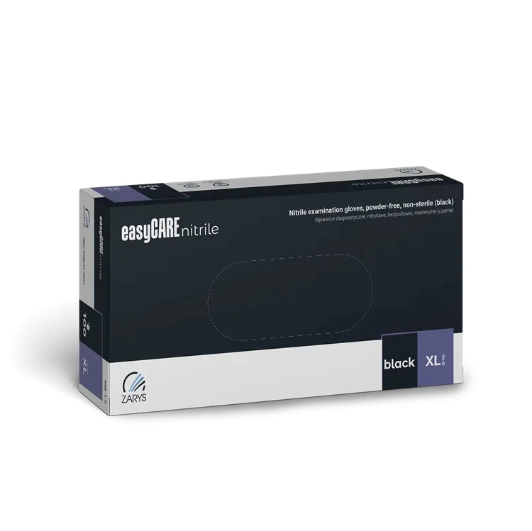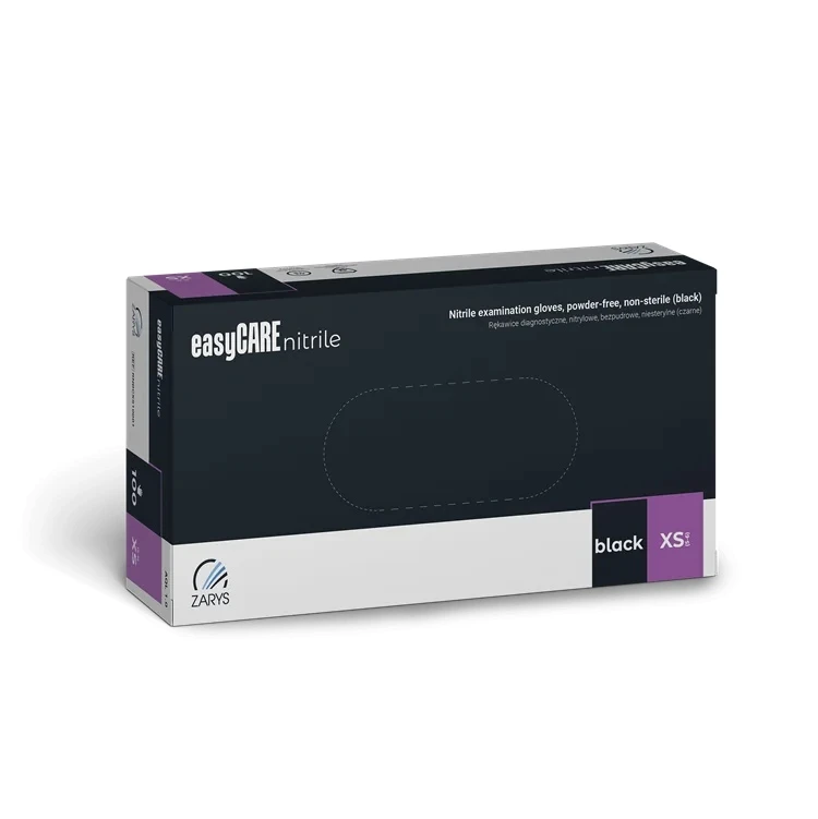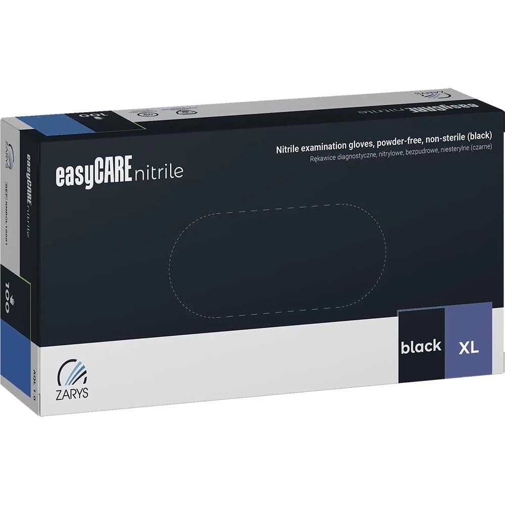 Rękawiczki Nitrylowe ZARYS EasyCare Bezpudrowe Diagnostyczne - Czarne, op. 100 szt.